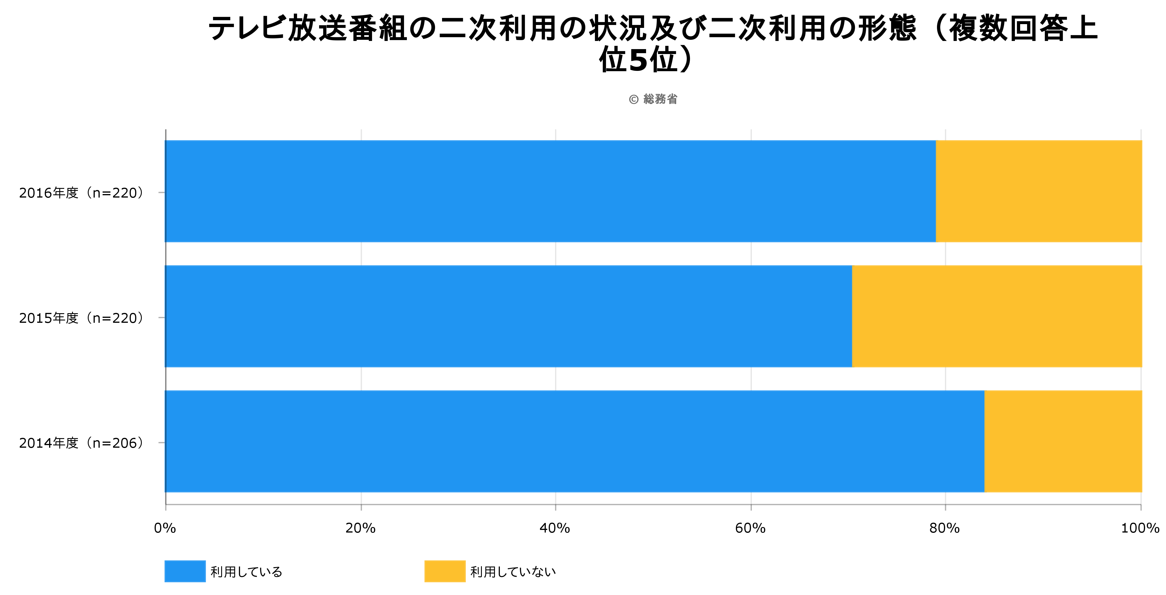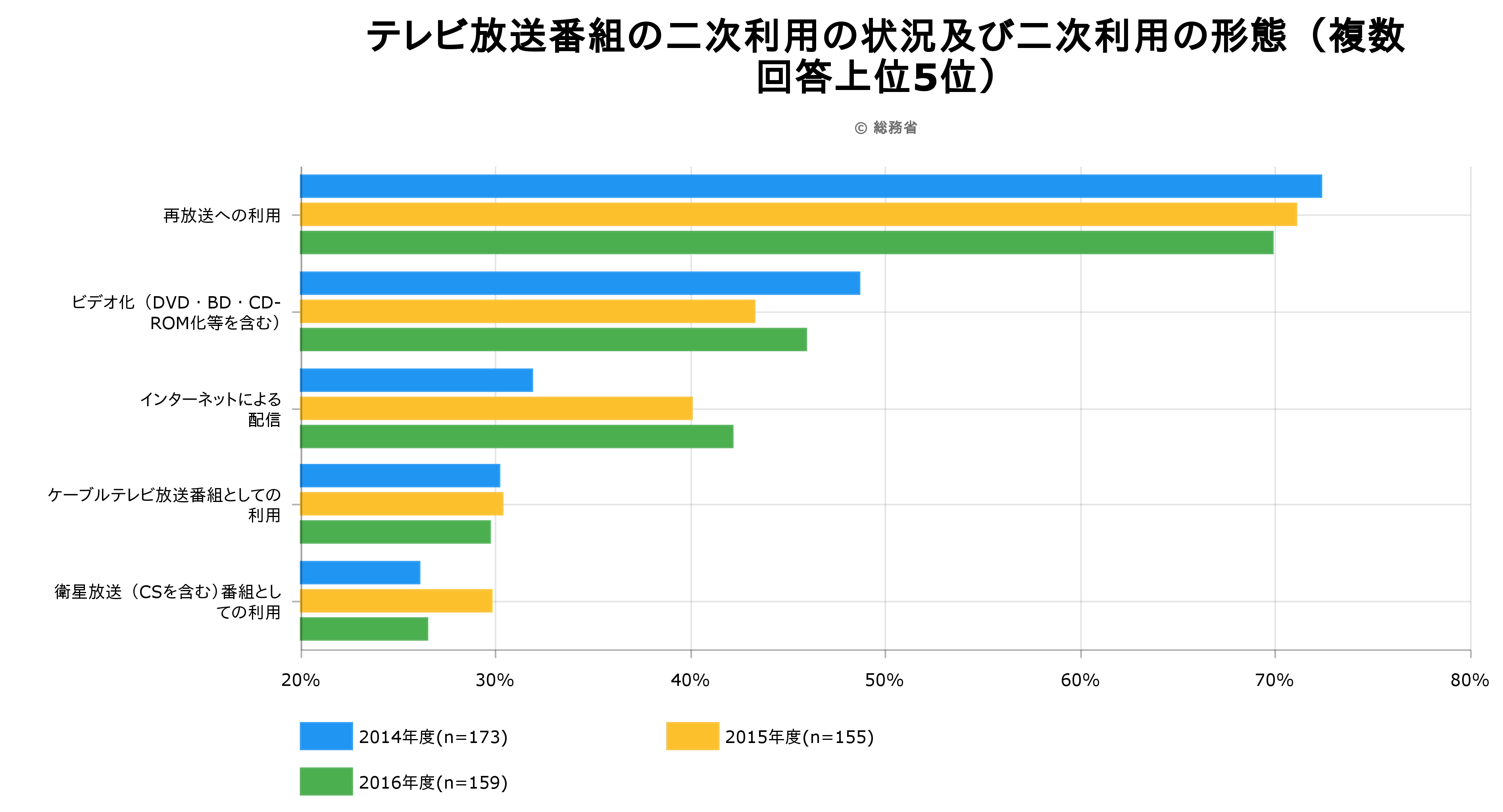 テレビ放送番組の二次利用の状況及び二次利用の形態(複数回答上位5位)