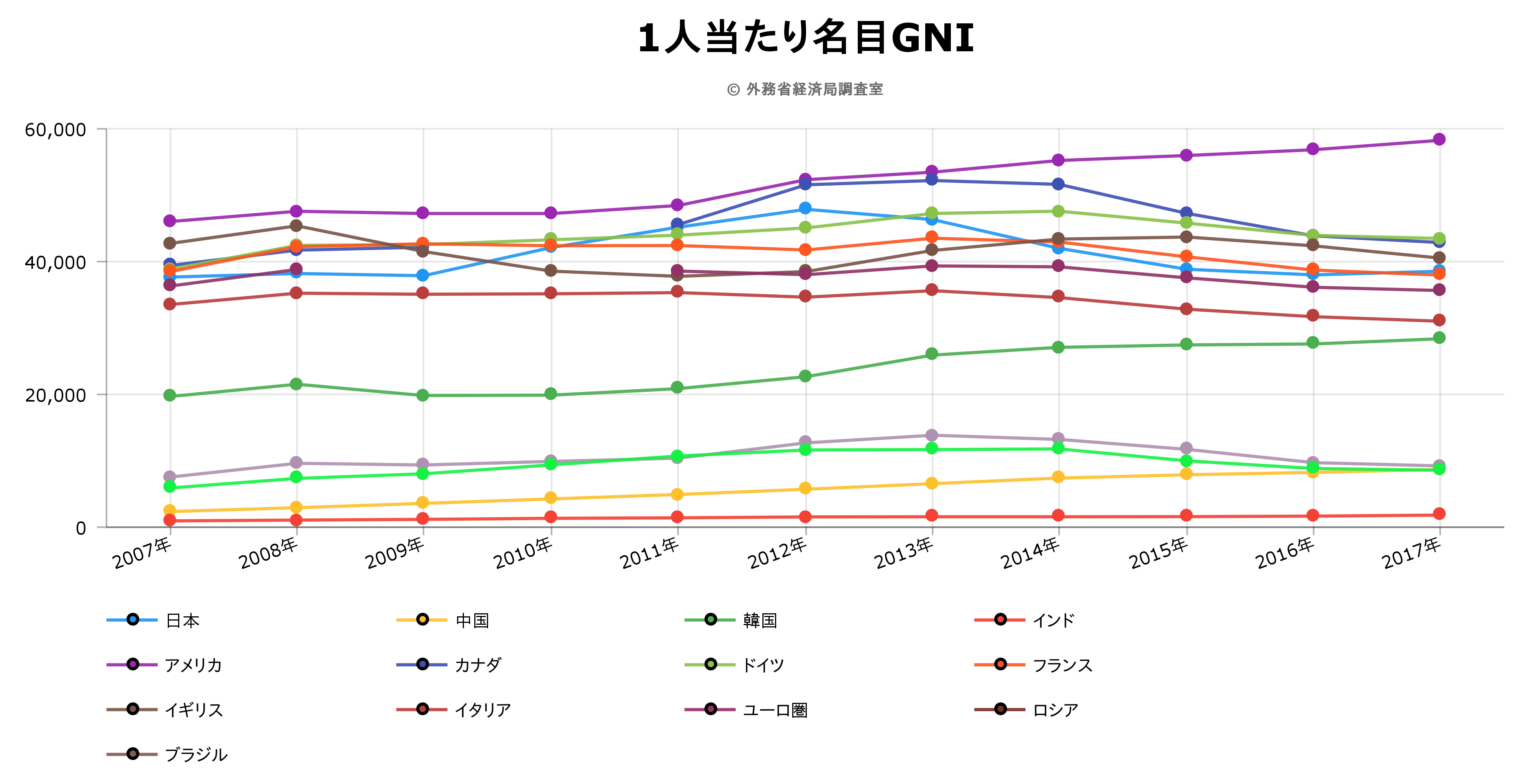 (単位:ドル) データ元:外務省経済局調査室「主要経済指標」、World Bank, World Development Indicators, June 28, 2018
