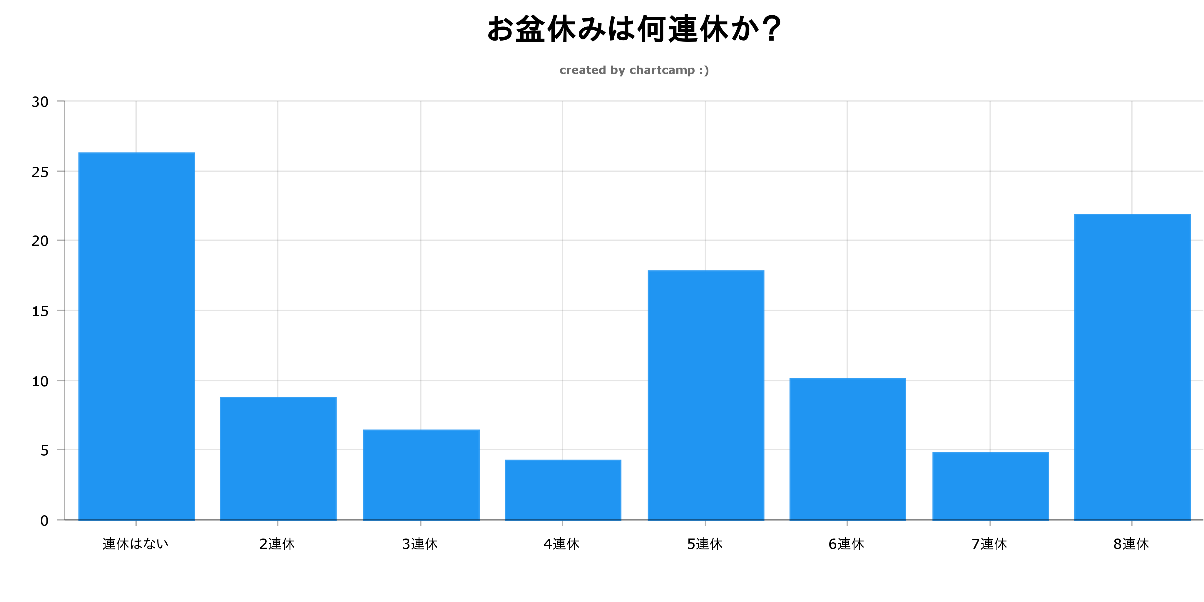 (就業中の人)お盆休み期間は最大何連休ですか? 【調査概要】 調査タイトル:「お盆の過ごし方」に関するアンケート調査 調査対象:10代~70代の男女890名...