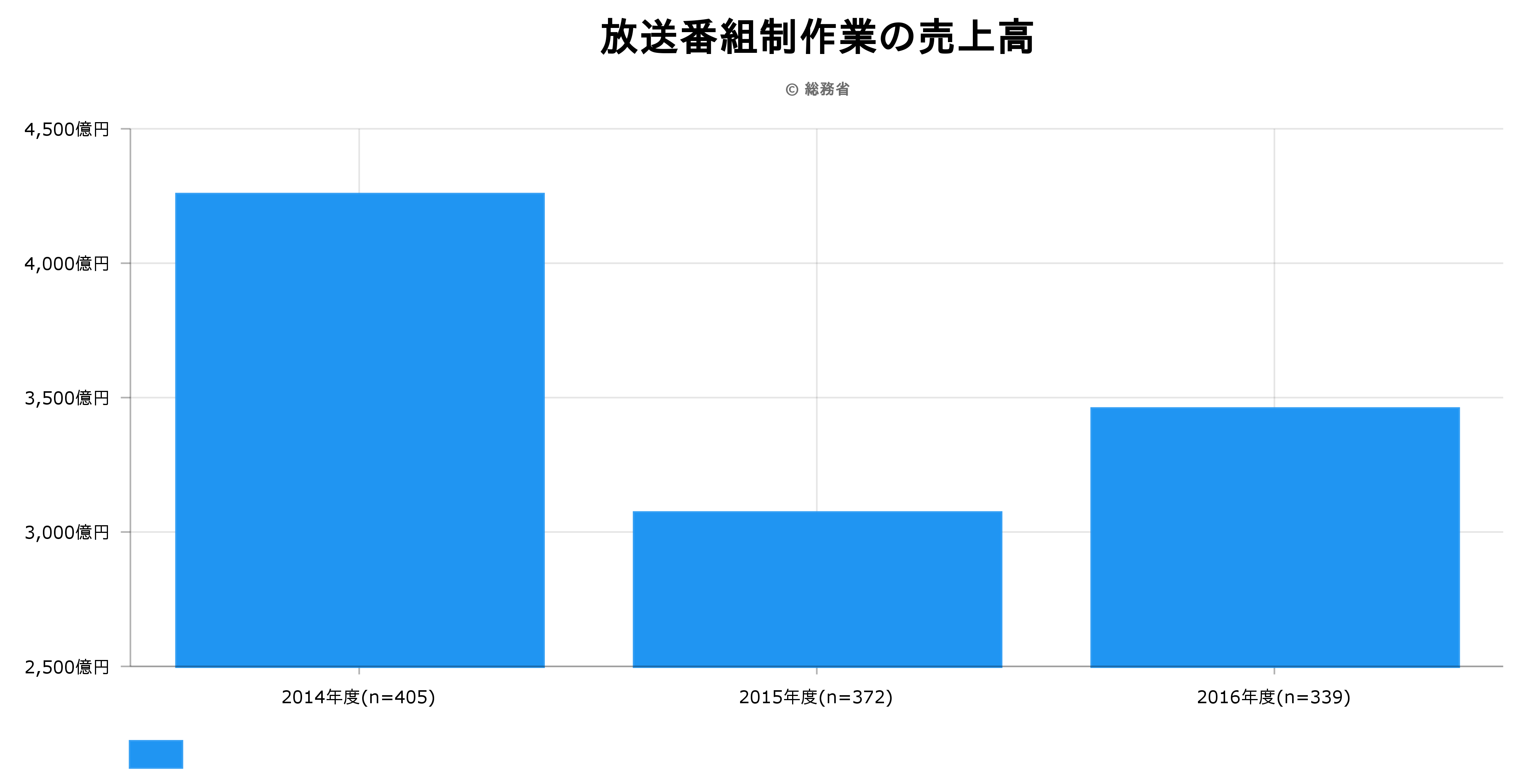 2016年度の売上高は、3,460億円 放送番組制作業の2016年度売上高は3,460億円(前年度比12.7%増)となっている