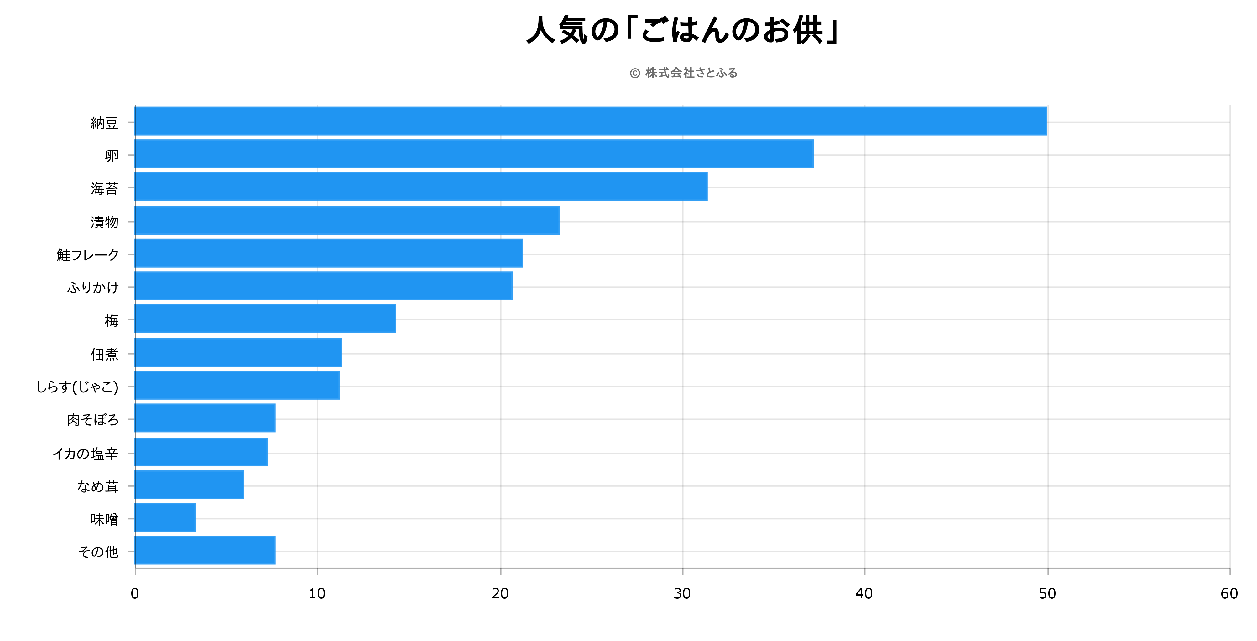 あなたが好きな「ごはんのおとも」は何ですか?(3つまで) ■調査概要 実施期間:2018 年 6 月1日~2018 年6 月4 日 手法 :インターネット調査 実施主体:株式会社さとふる...