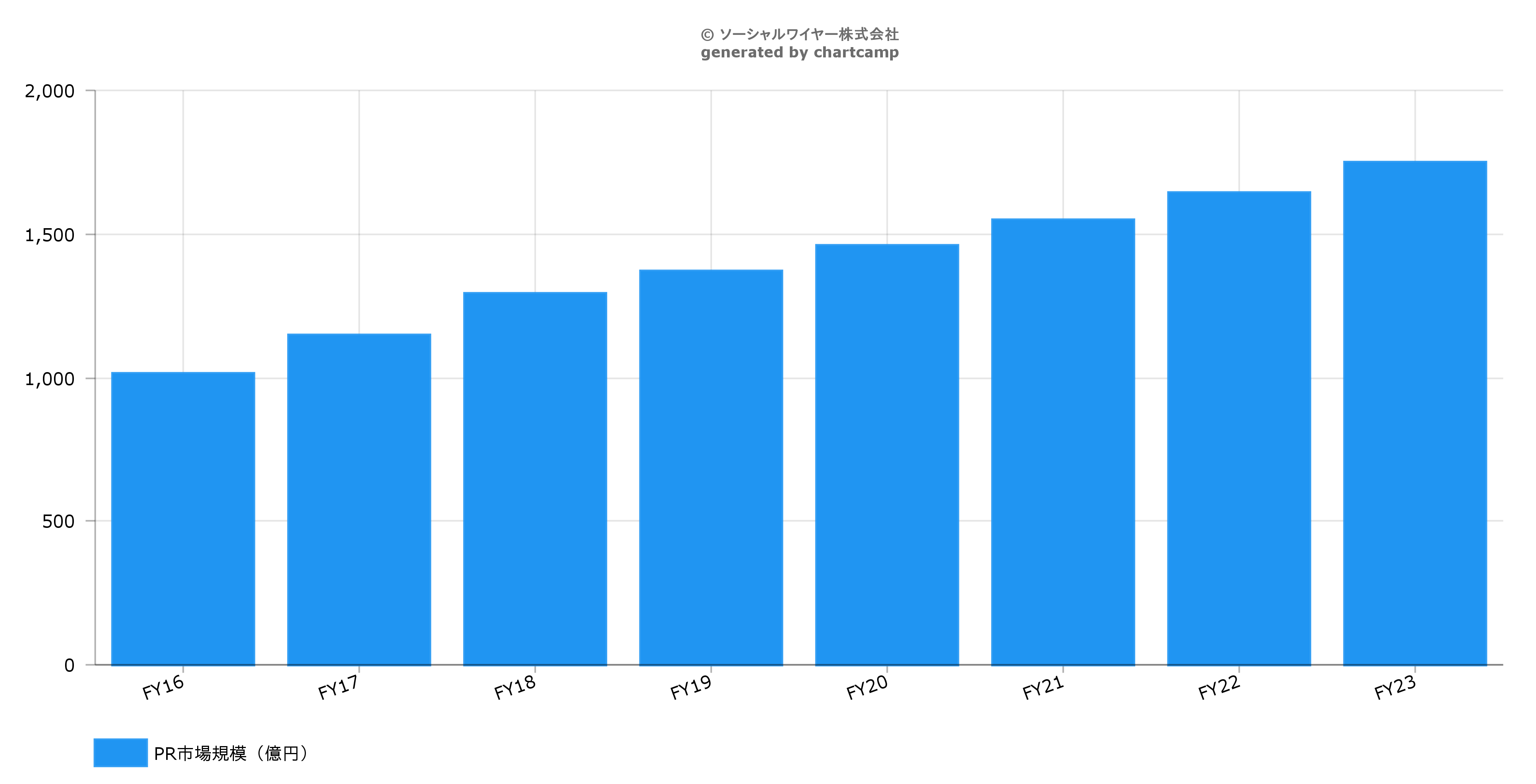 2019年5月公益社団法人日本パブリックリレーションズ協会発表「PR業に関する実態調査」を参考にソーシャルワイヤーの推計による市場規模