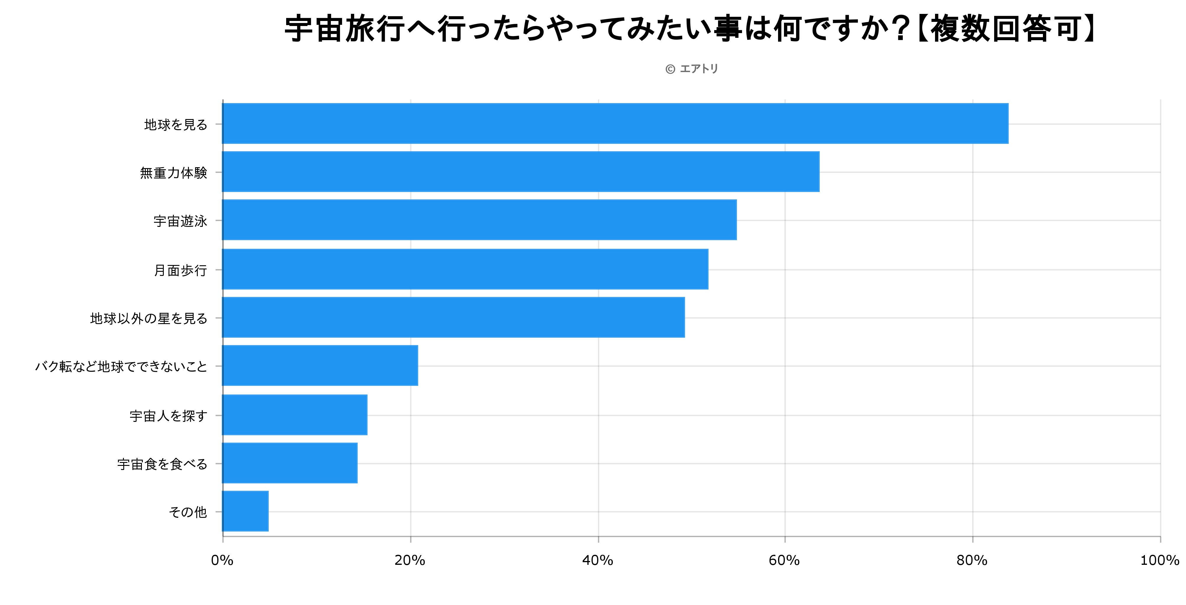 宇宙旅行へ行ったらやってみたい事は何ですか?【複数回答可】