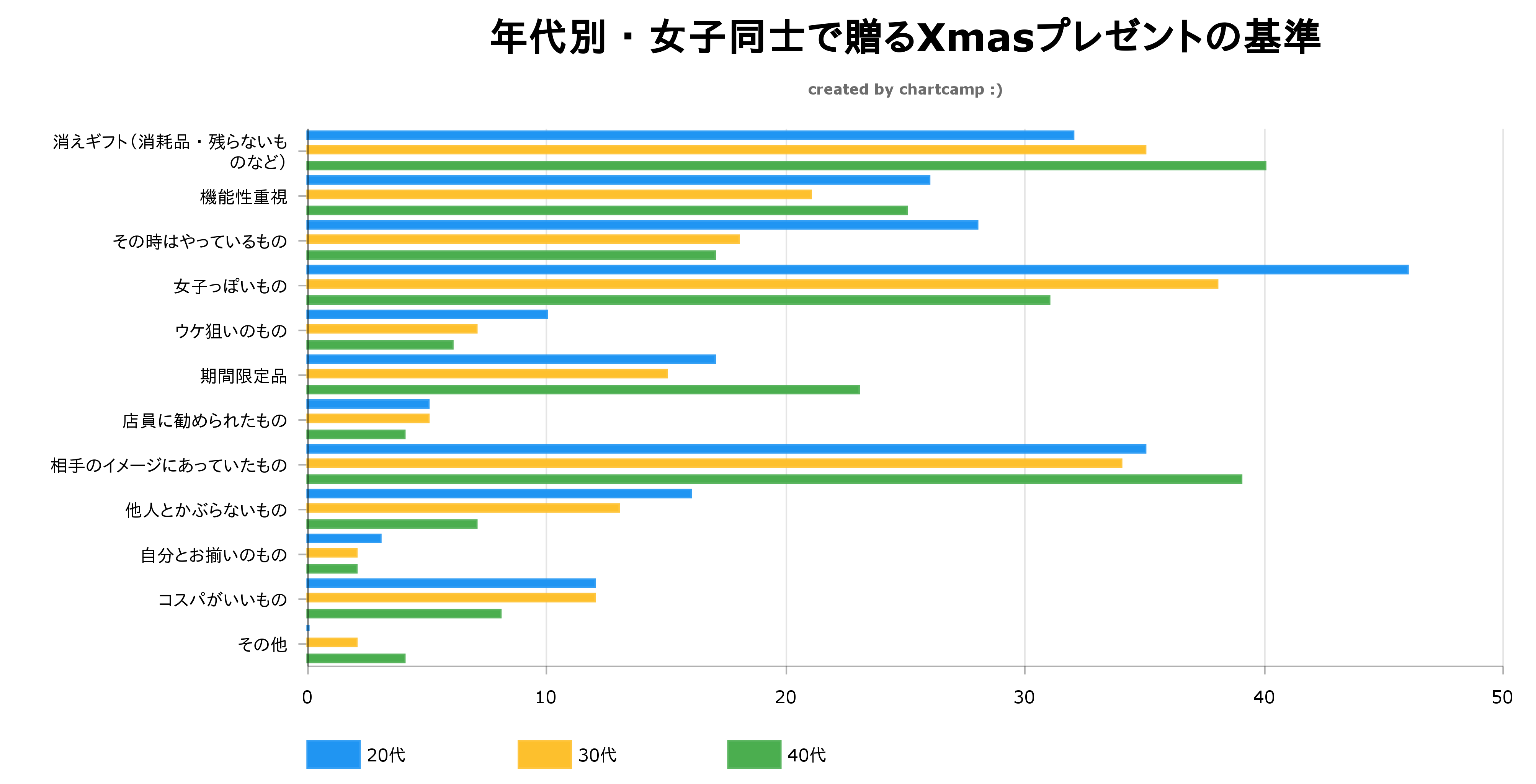 年代別・女子同士で交換するXmasプレゼントの平均予算