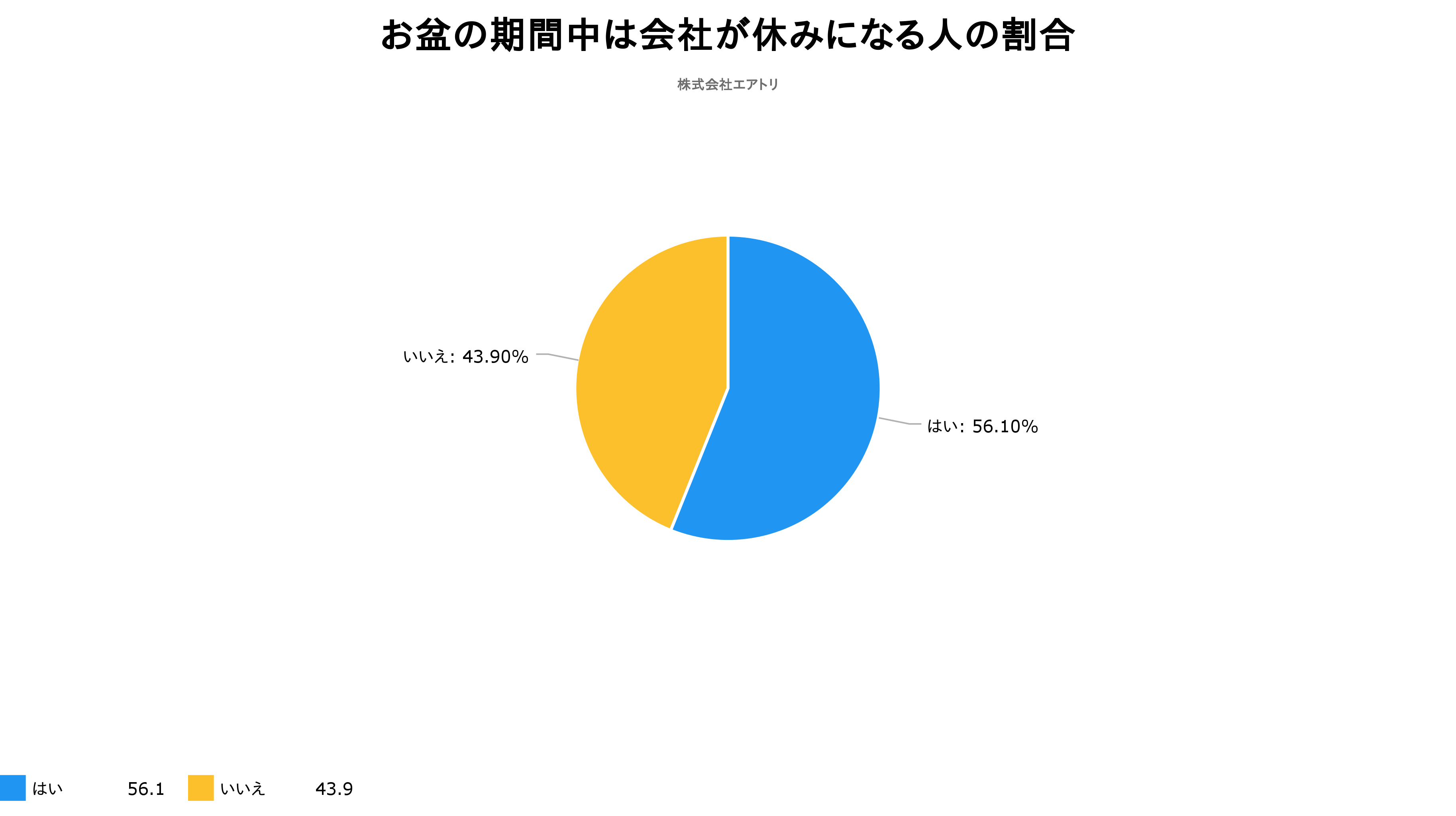 (就業中の人)お盆休みの期間は会社が休みになりますか? 【調査概要】 調査タイトル:「お盆の過ごし方」に関するアンケート調査 調査対象:10代~70代の男女890名...
