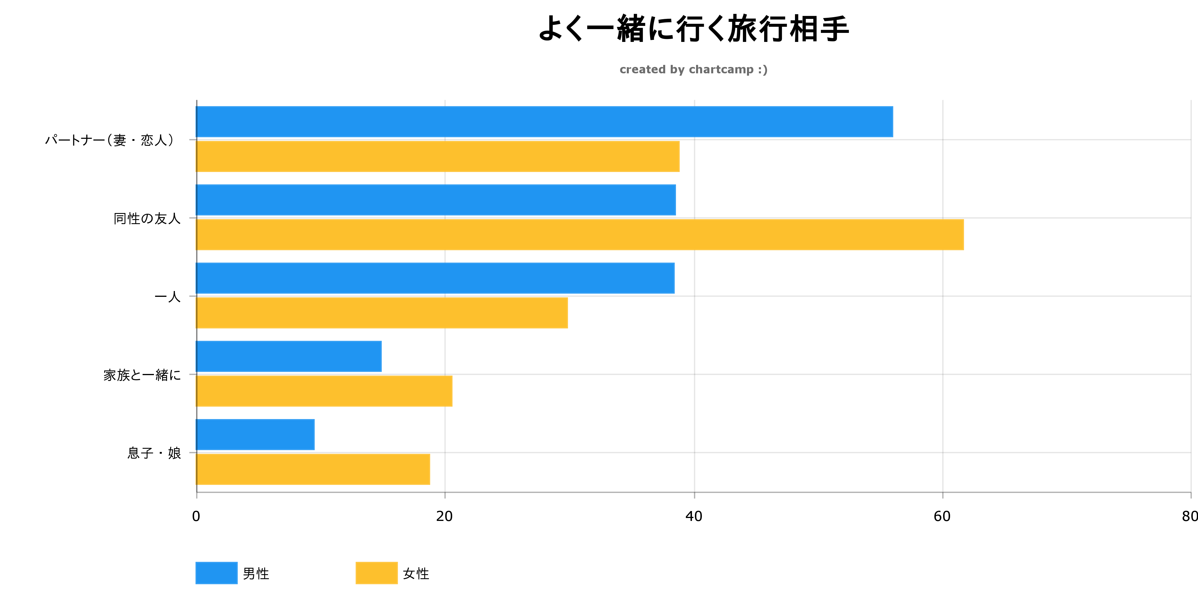 旅行に行く際、よく一緒に行く相手は誰ですか?(複数回答可)回答数=1837 【調査概要】 調査タイトル:「同性2人旅」に関するアンケート調査 調査対象: 10代~70代の男女1837名...
