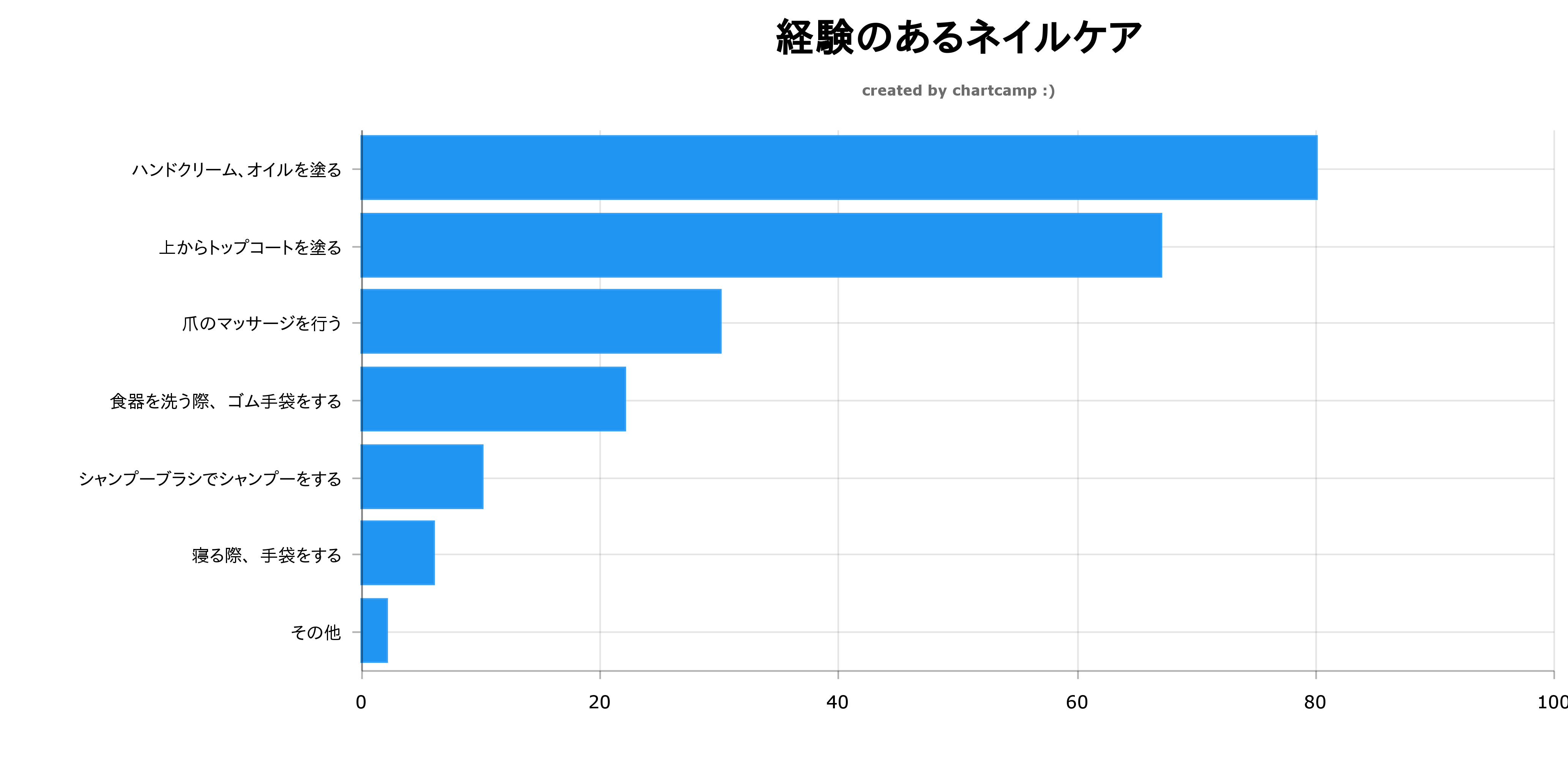 ■質問内容 ネイルをしている時のケアで、行ったことがあるものをお答えください(複数回答) ■調査概要 調査テーマ:「ネイルに関するアンケート」 調査方法...