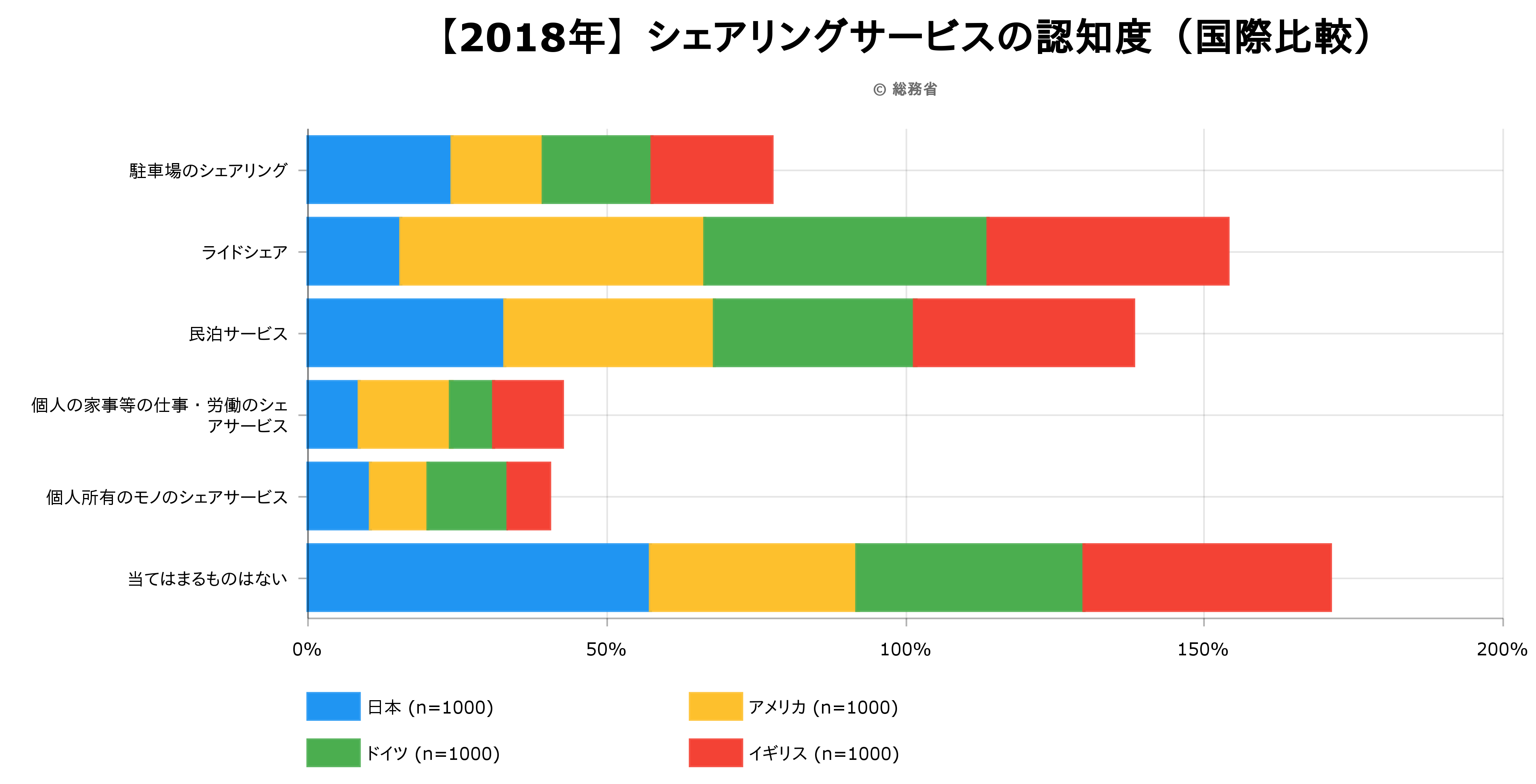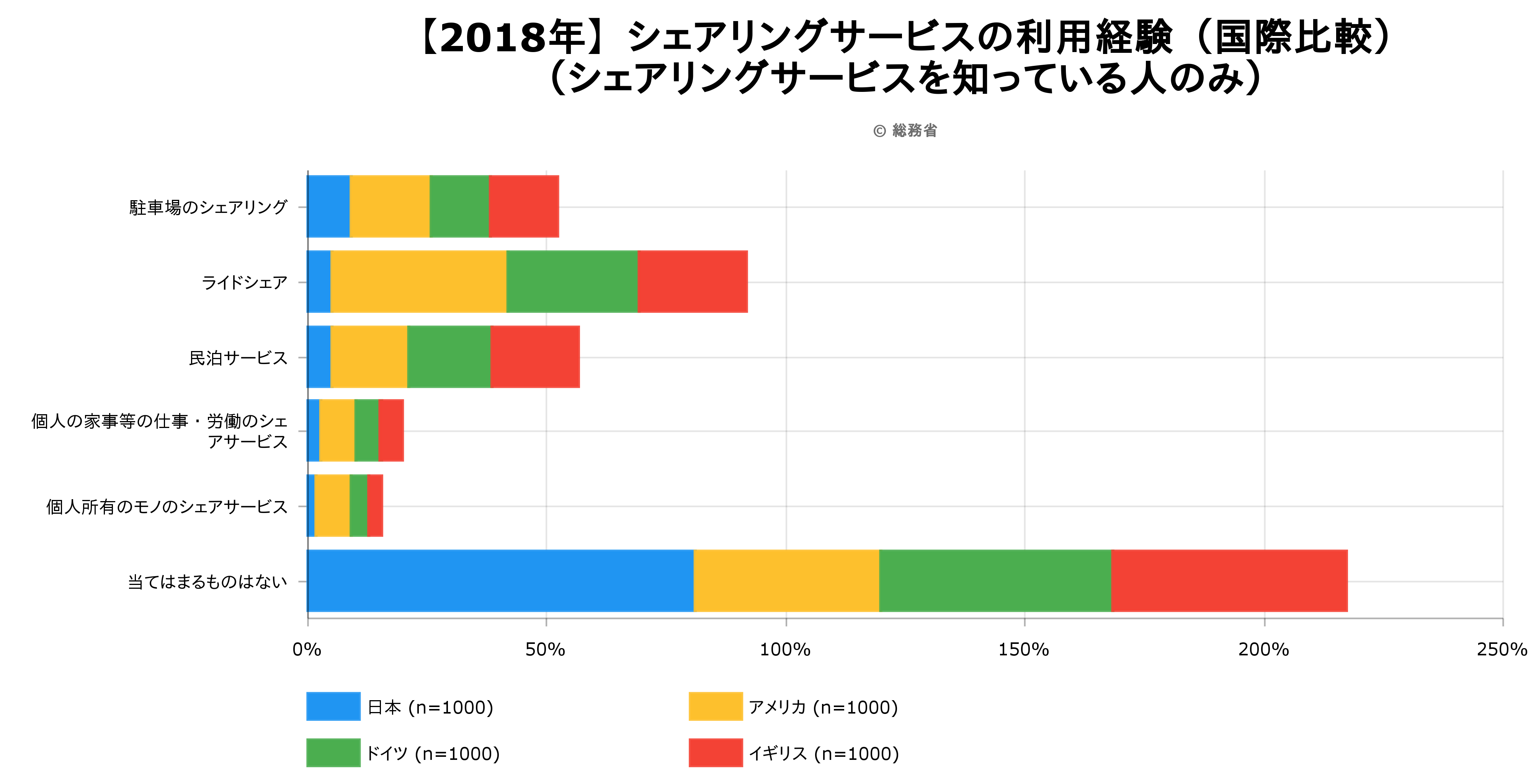 【2018年】シェアリングサービスの利用経験(国際比較)(シェアリングサービスを知っている人のみ)